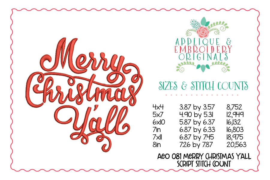081 Merry Christmas Y’all Script Embroidery Design