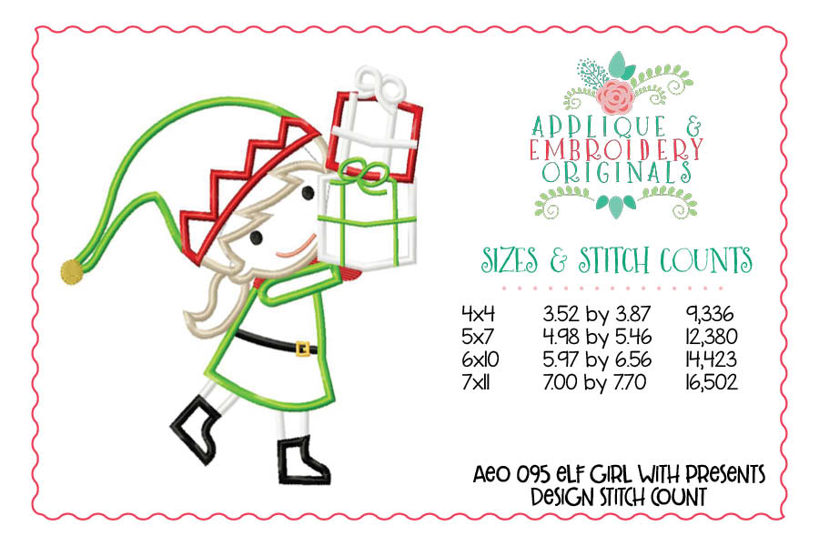 095 Christmas Elf Girl with Presents Applique Design