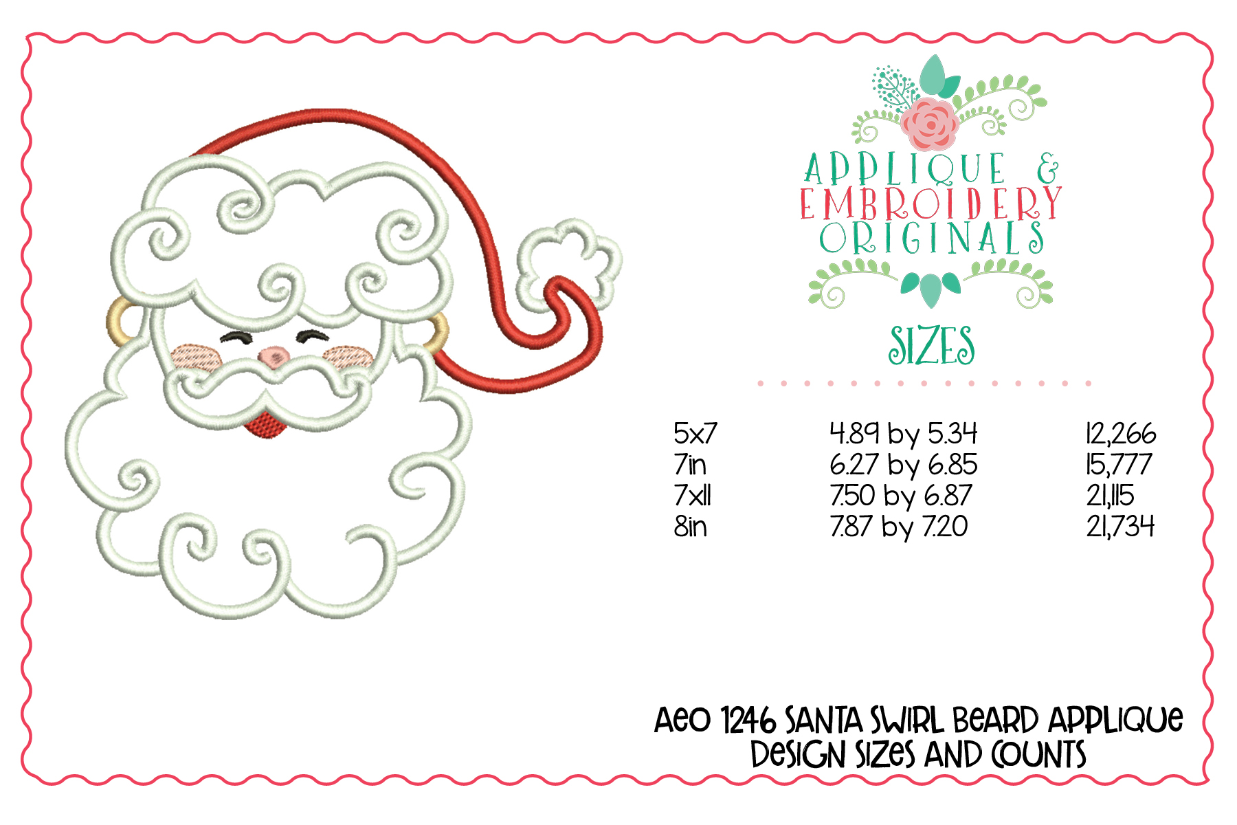 1246 Christmas Santa Swirl Beard Applique Design