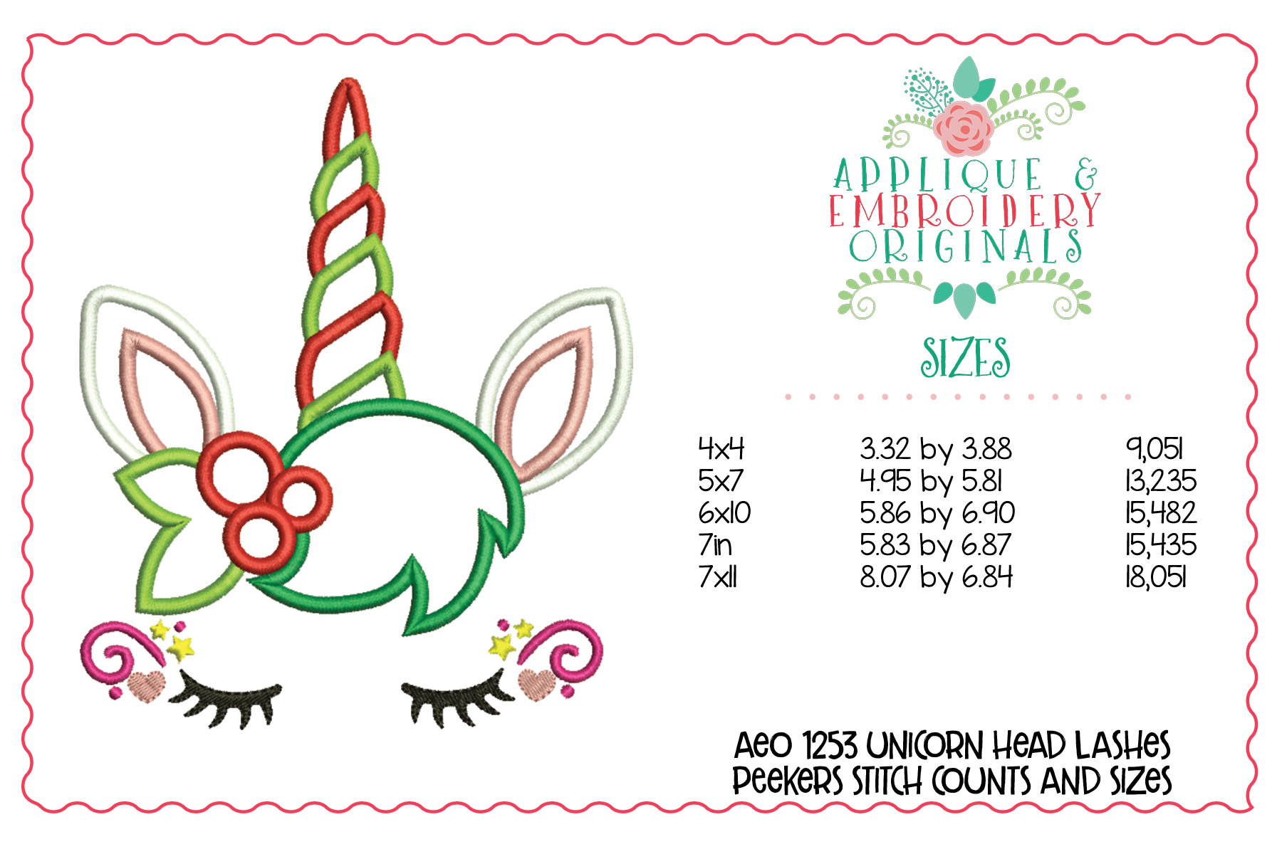 1253 Christmas Unicorn Head Lashes Peekers Applique Design
