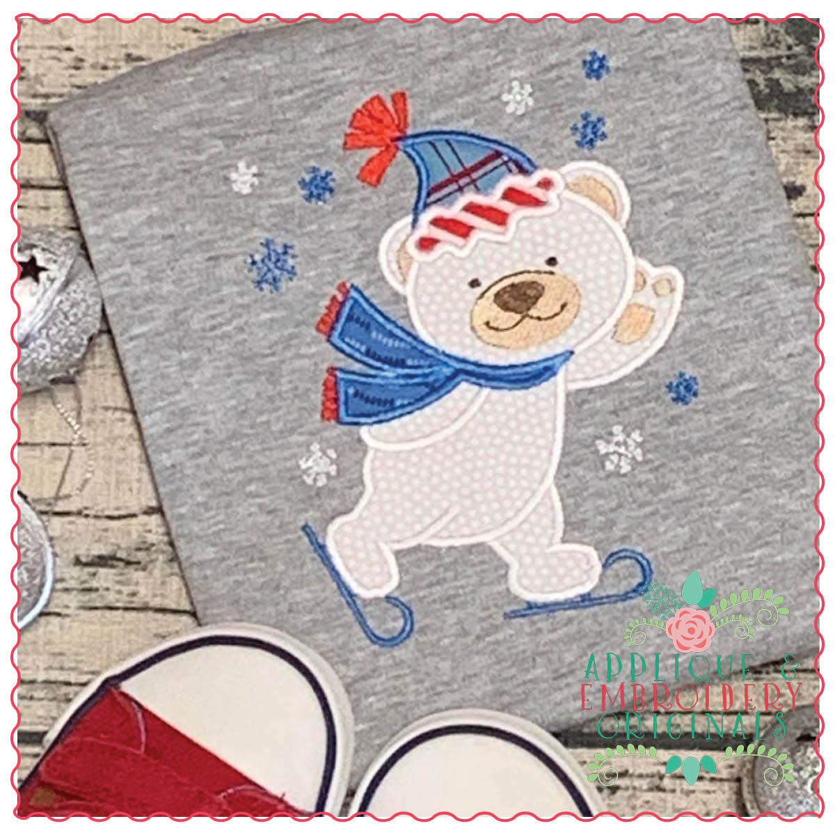 1320 Ice Skating Polar Bear Applique Design
