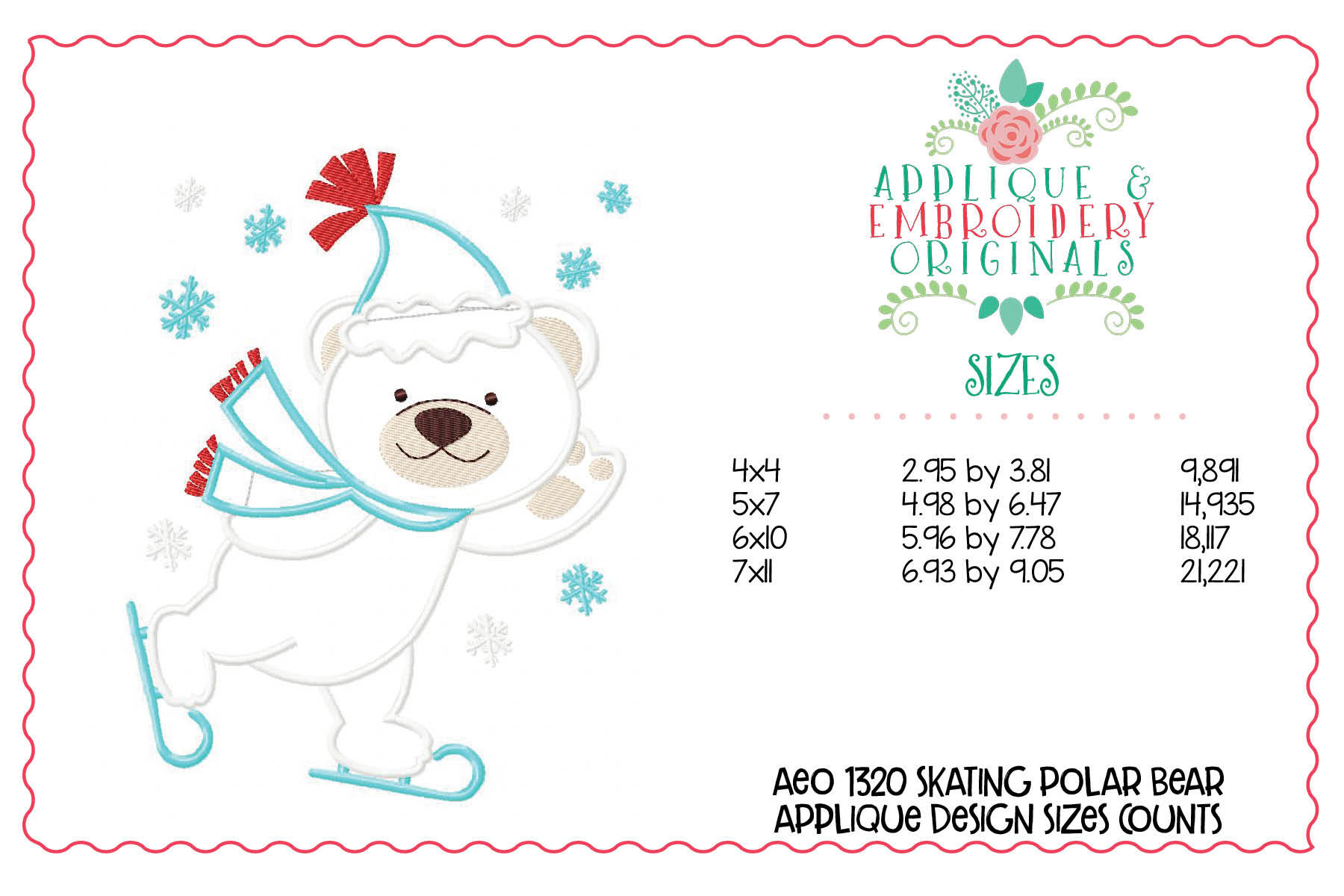 * do not alter this design to create your own embroidery or applique design