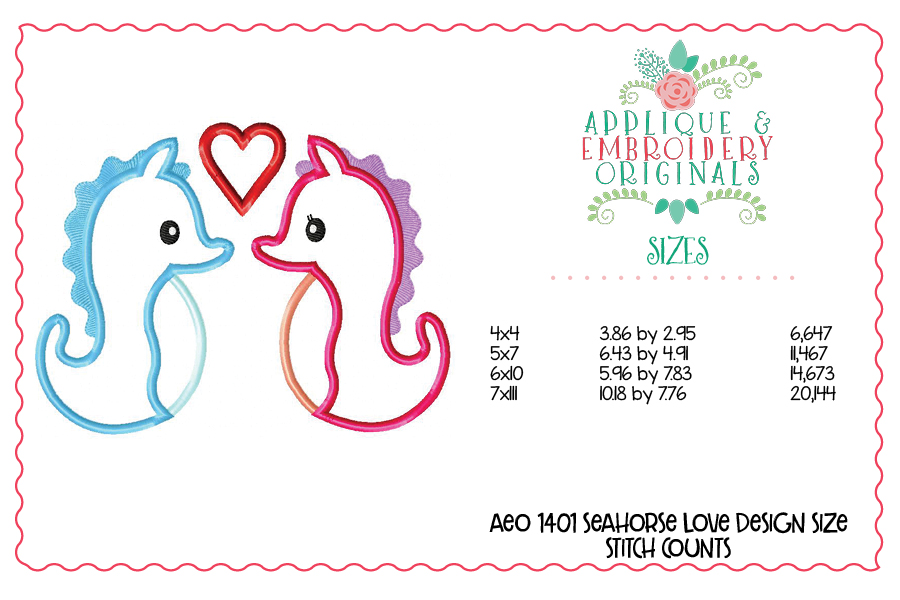1401 Seahorse Love Heart Applique Design