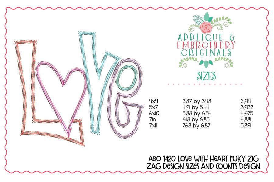 1420 Love Zig Zag Stitch Applique Design