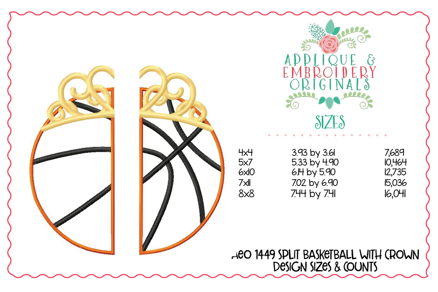1449 Split Basketball with Crown Applique Design