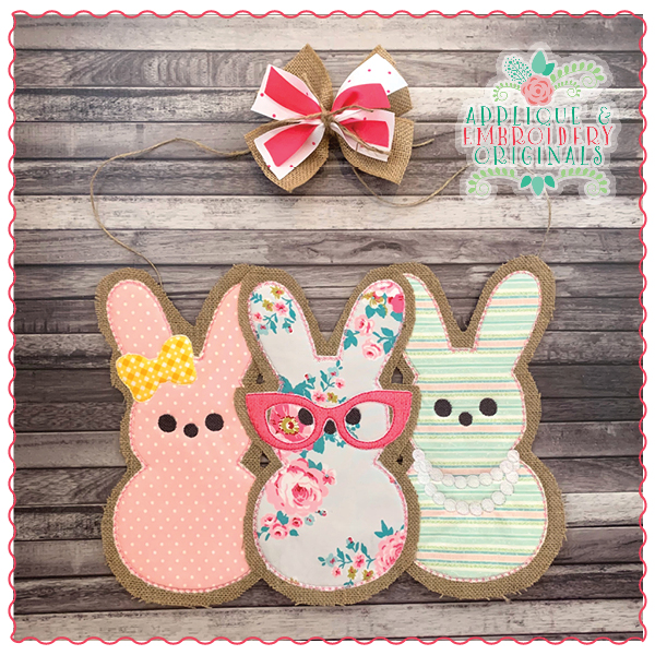 1486 Marshmallow Bunny Girls Trio Door Hanger