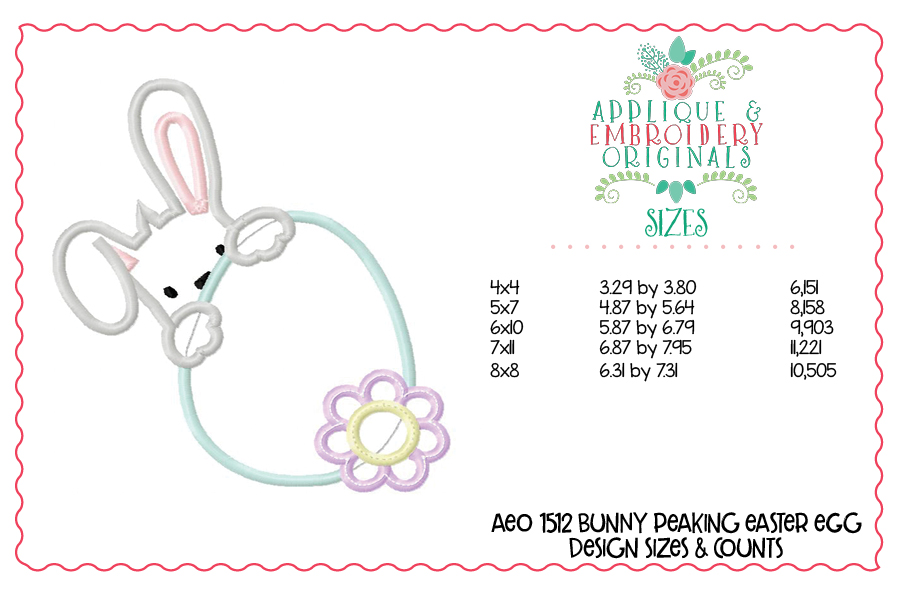 1512 Bunny Peeking Easter Egg Applique Design