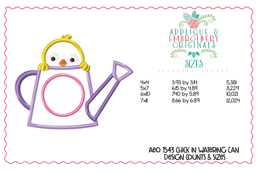 1543 Chick in Watering Can Applique Design