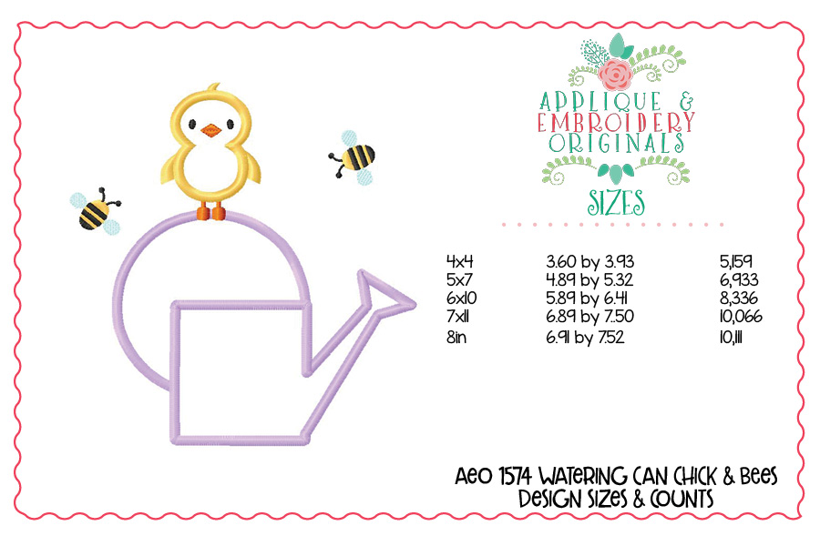1574 Watering Can Chick & Bees Applique Design