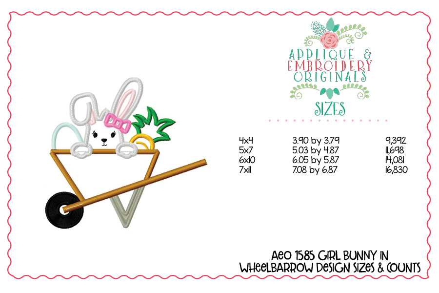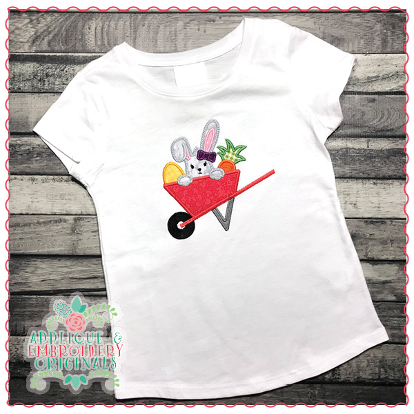 1585 Girl Boy Bunny in Wheelbarrow Applique Design