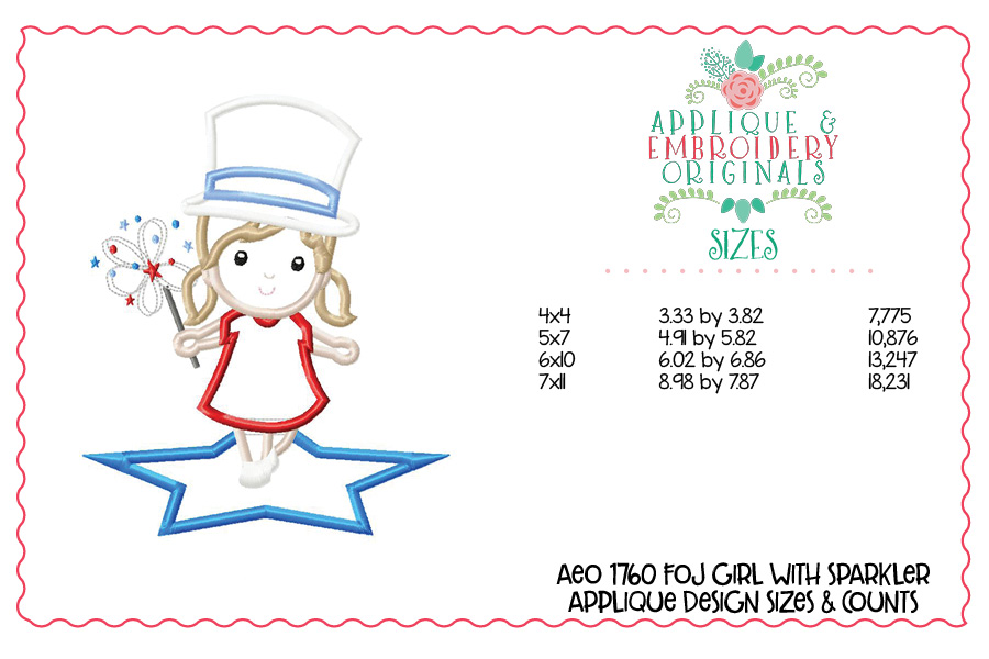 1760 FOJ Girl with Sparkler Applique Design