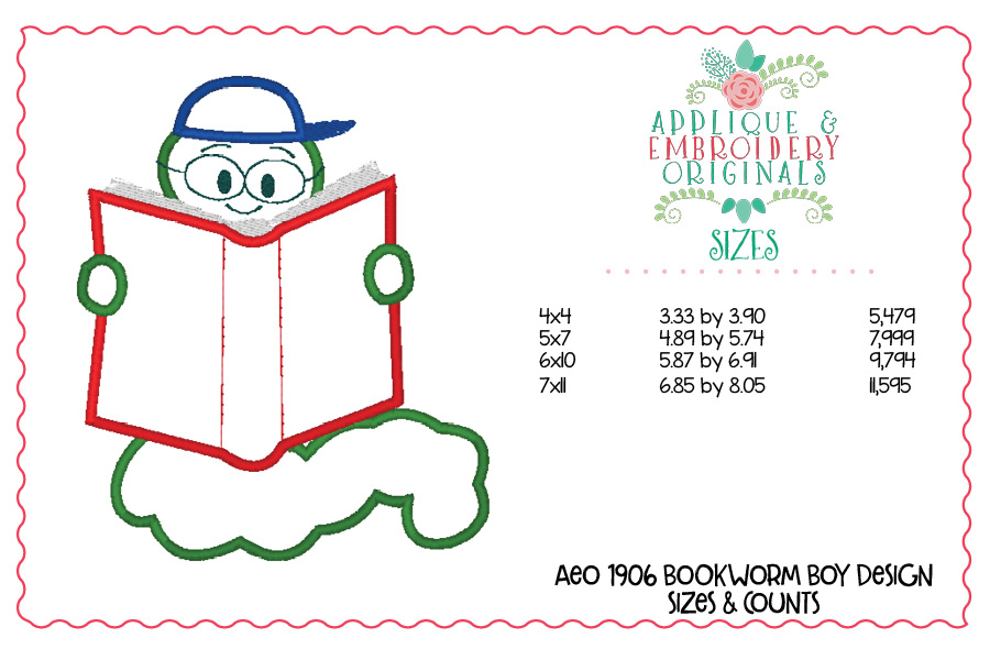 1906 Bookworm Applique Design