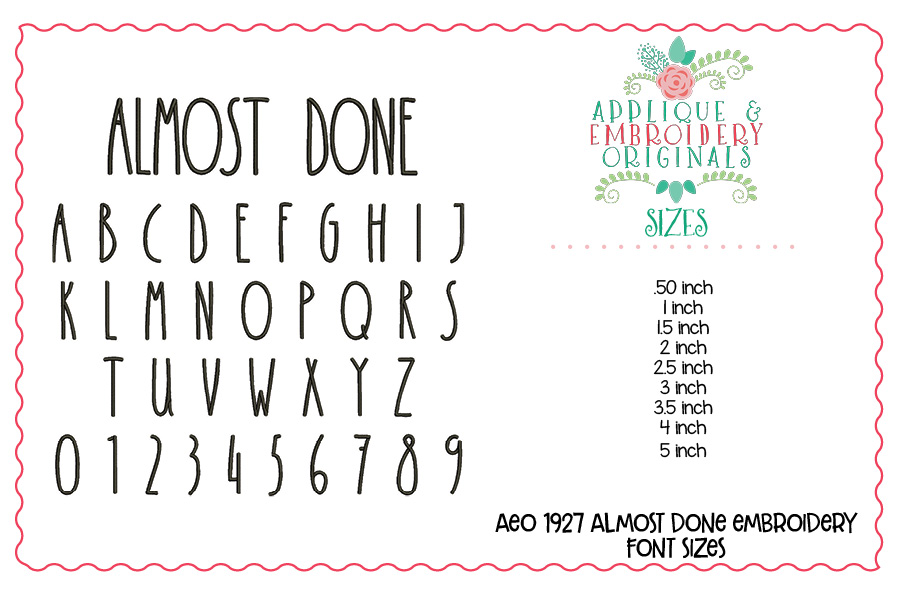 1927 Almost Done Embroidery Font