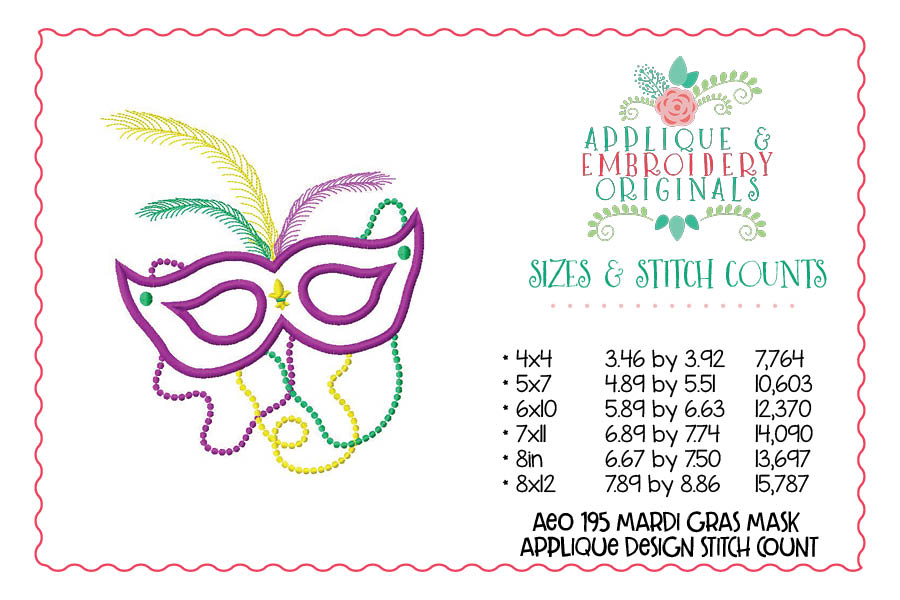 195 Mardi Gras Mask and Beads Applique Design