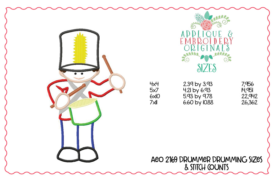 2169 Drummer Drumming Applique Design