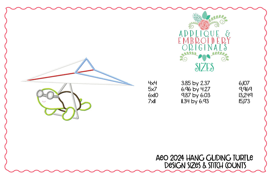 2024 Hang Gliding Turtle Applique Design