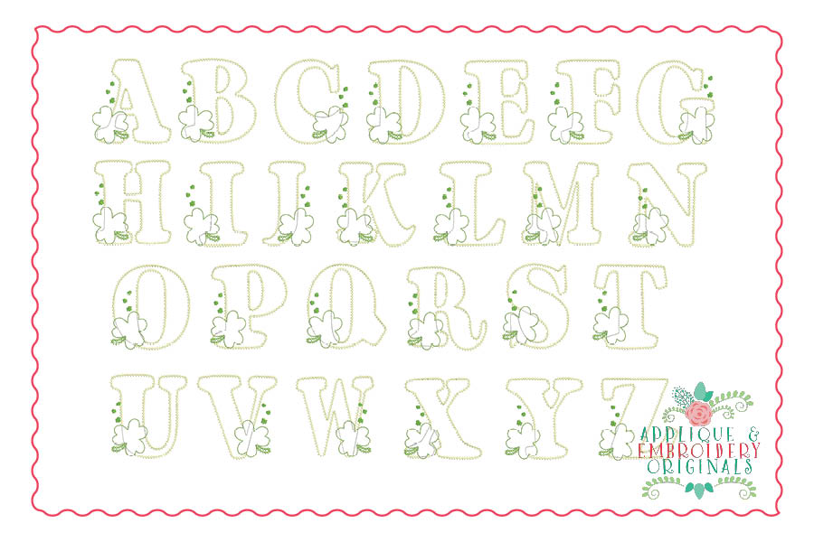 214 Frayed Shamrock Monogram Alpha Font Applique