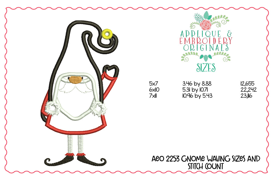 2253 Gnome Waving Applique Design