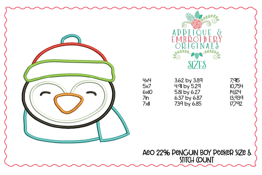 2296 Penguin Boy Peeker Applique Design
