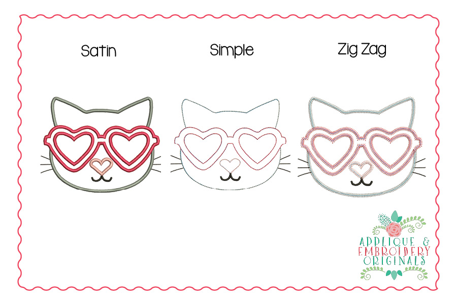 2300 Kitty Heart Sunglasses All-In-One Applique Design