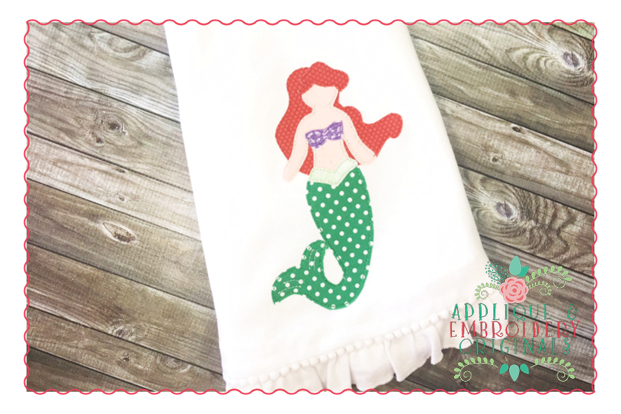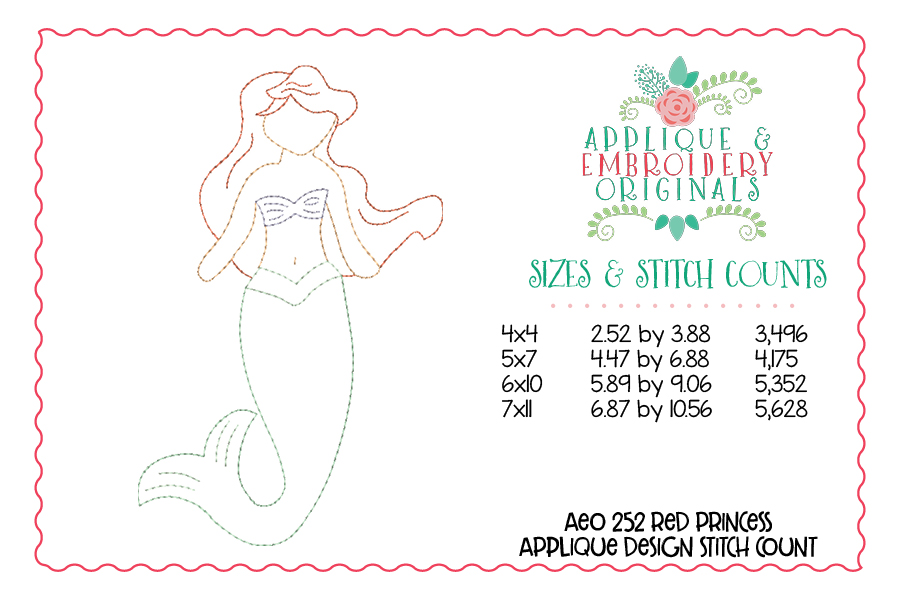 252 Red Mermaid Princess Simple Stitch Applique Design