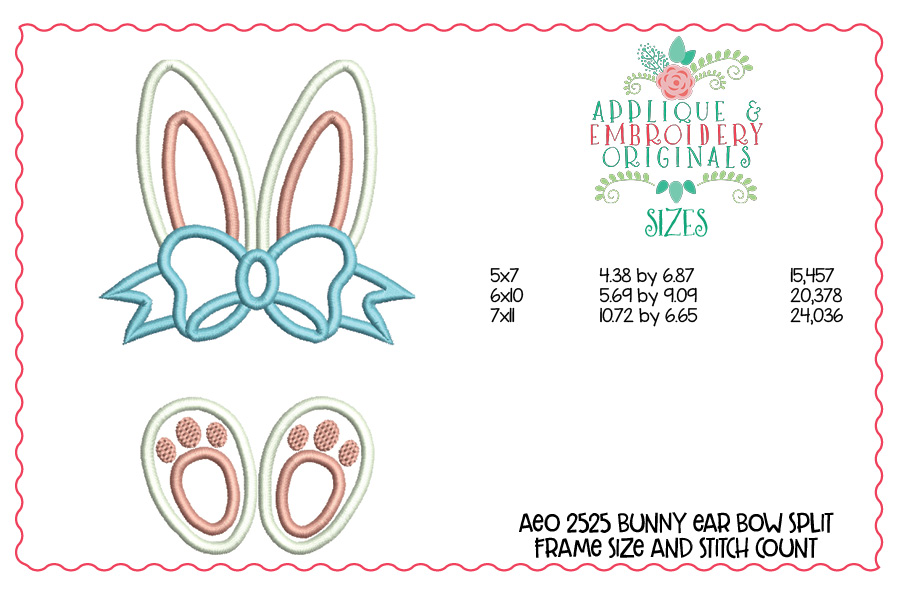 2525 Bunny Ear Bow Split Frame Applique Design