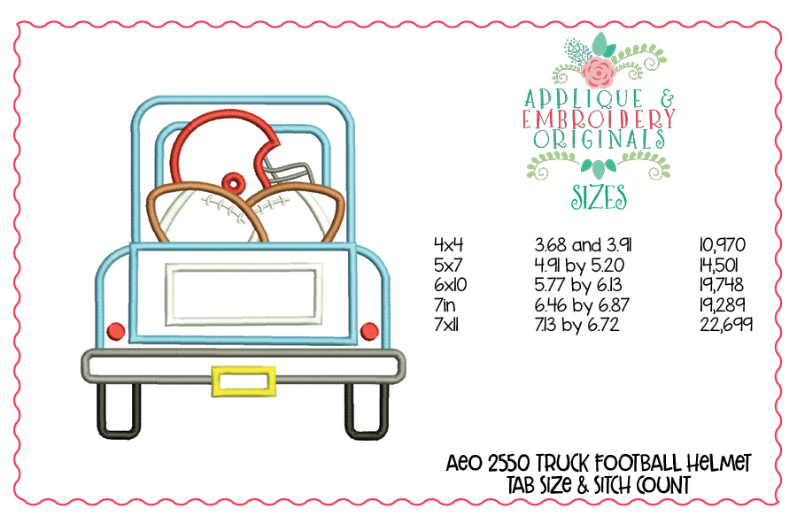 2550 Truck Football & Helmet Applique Design