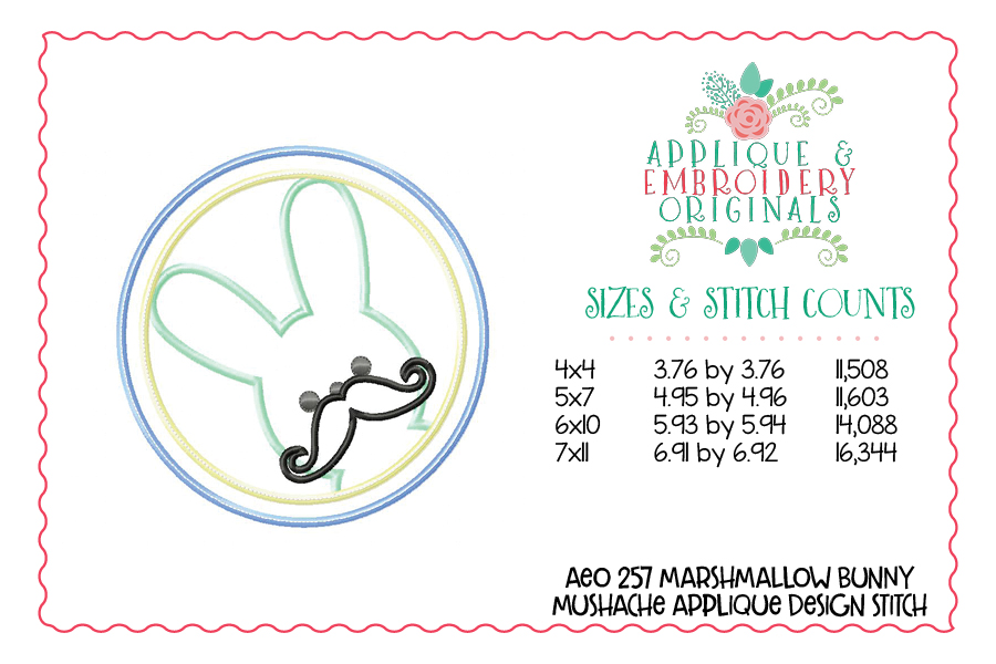 257 Marshmallow Bunny with Mustache Circle Applique Design