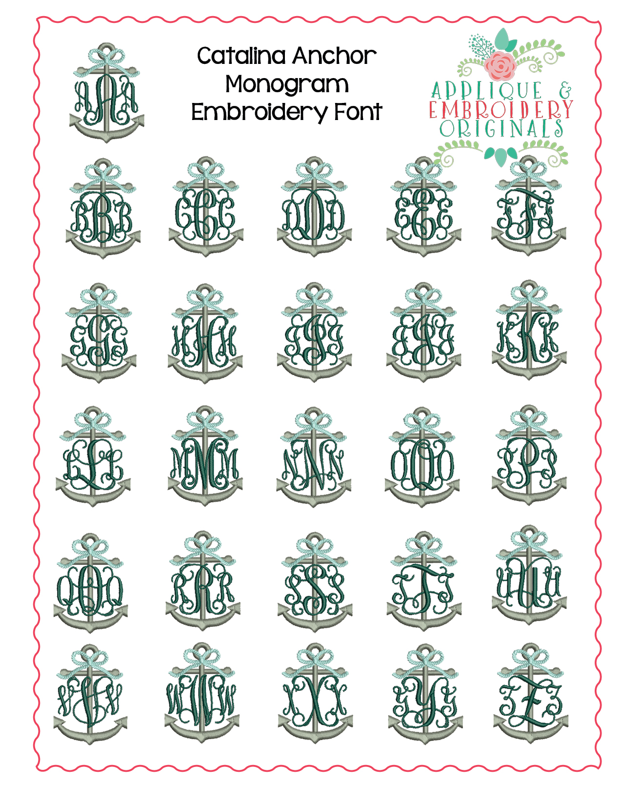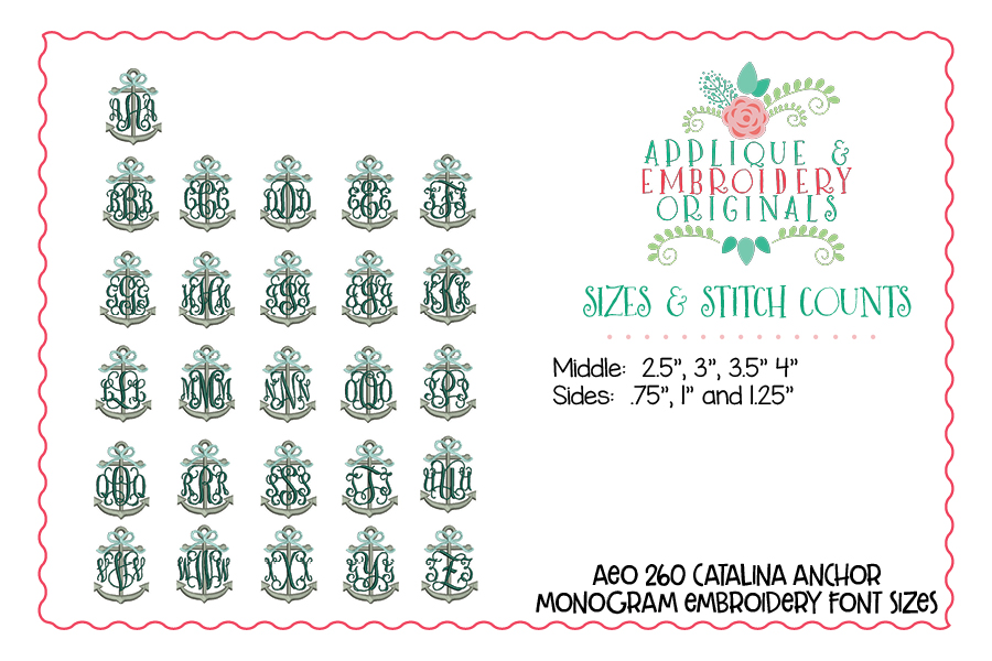 260 Catalina Anchor with Bow Monogram Embroidery Font