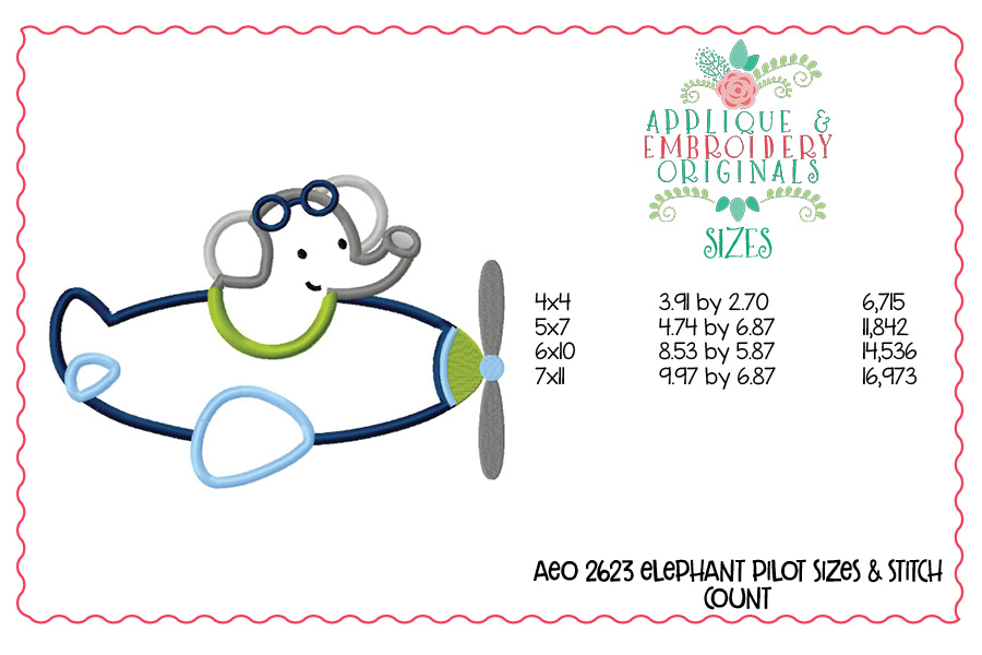 2623 Elephant Pilot Applique Design