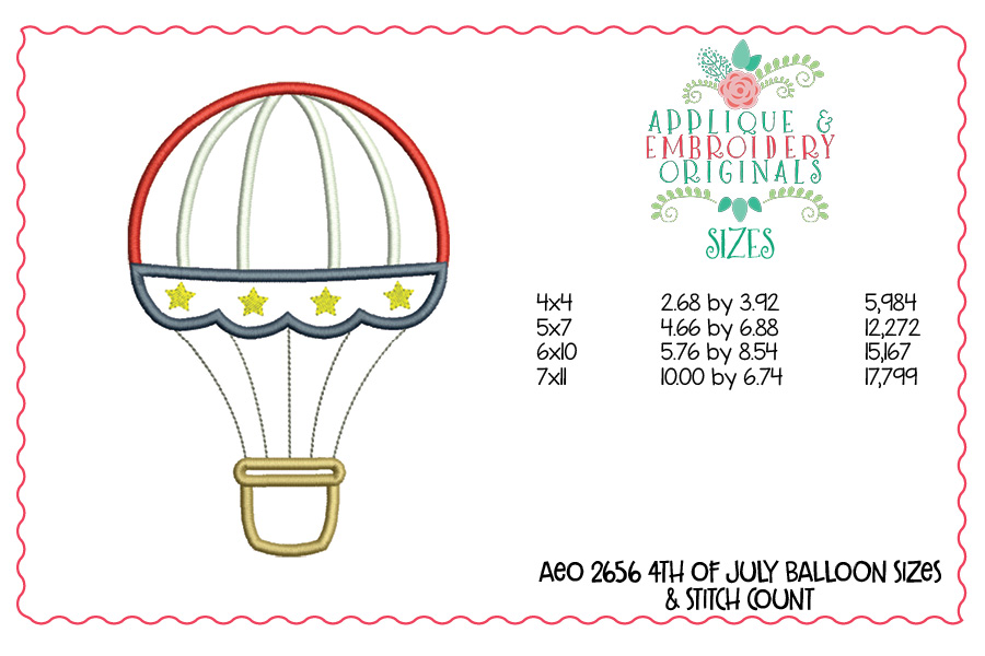 2656 4th of July Hot Air Balloon Applique Design