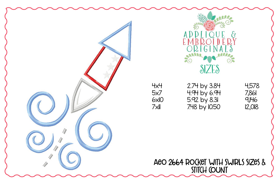 2664 Rocket with Swirls Applique Design