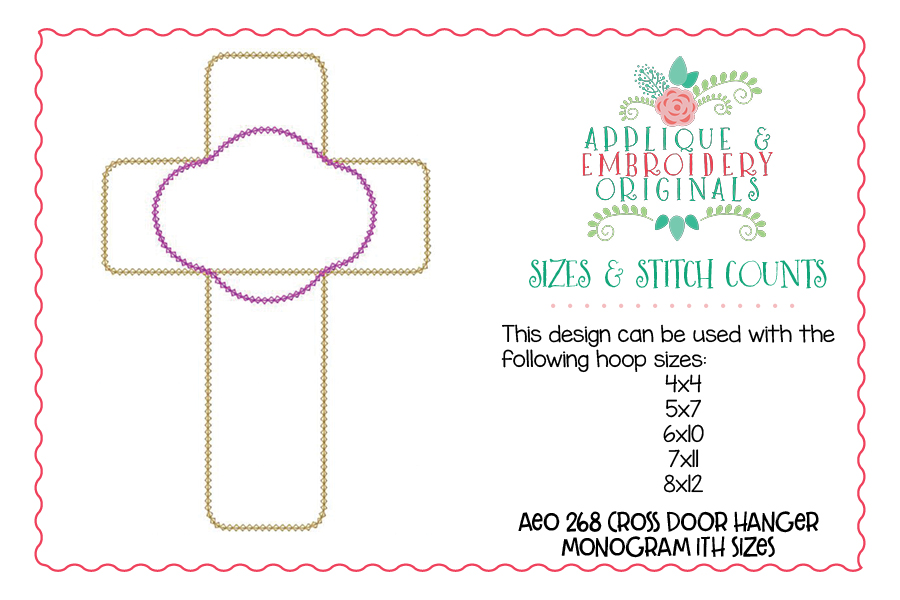 268 Cross Monogram Door Hanger In-The-Hoop Applique Design