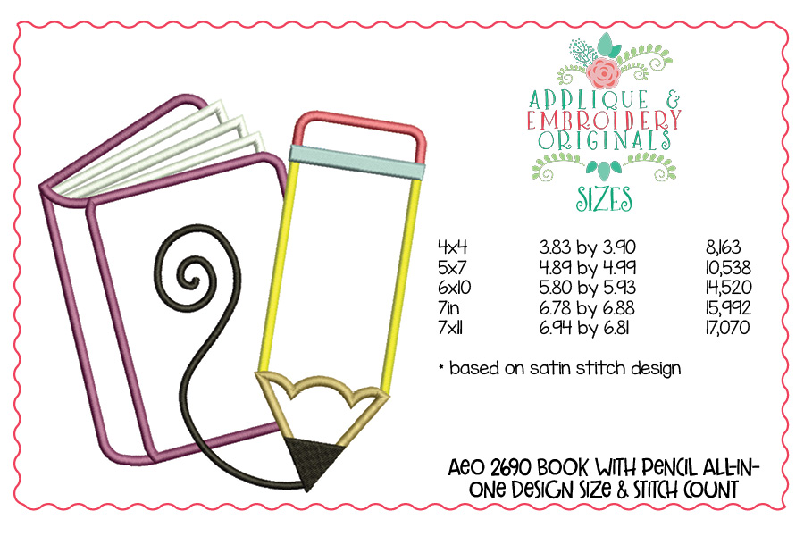 2690 Book wit Pencil All-In-One Applique Design