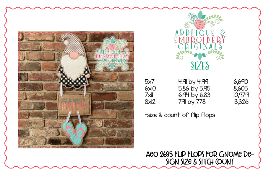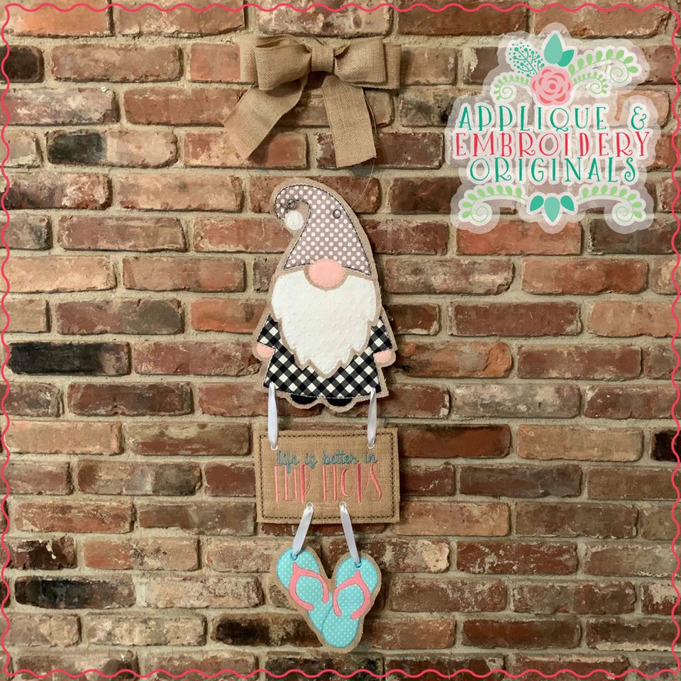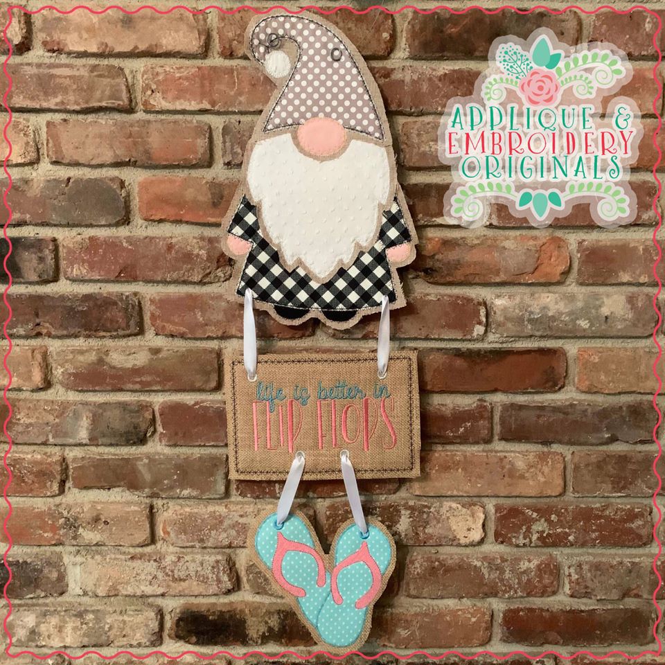 2695 Flip Flops & Plaque Interchangeable for Gnome In-The-Hoop Design