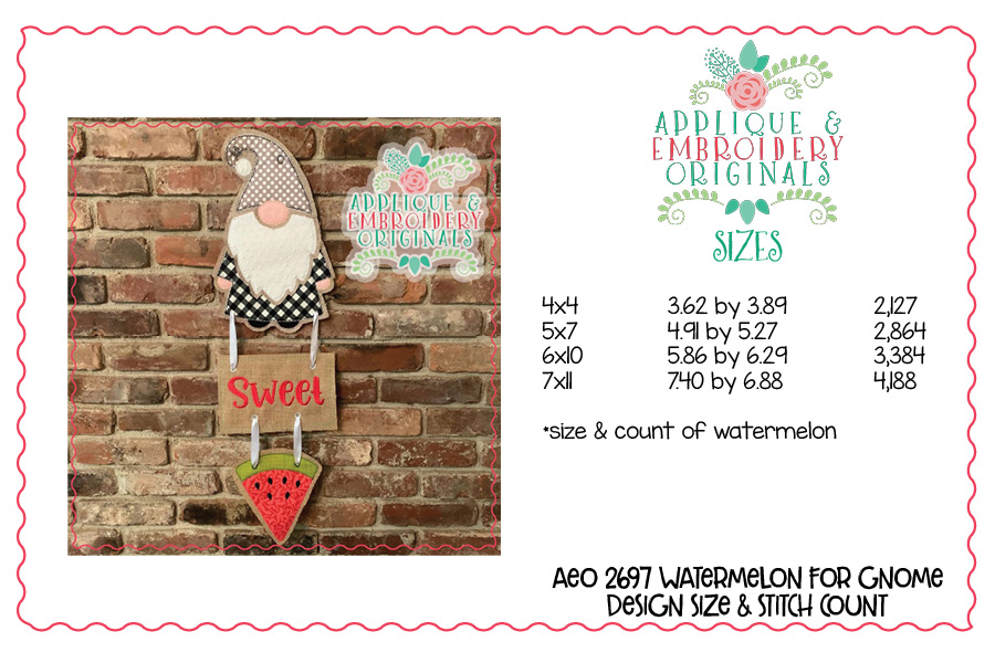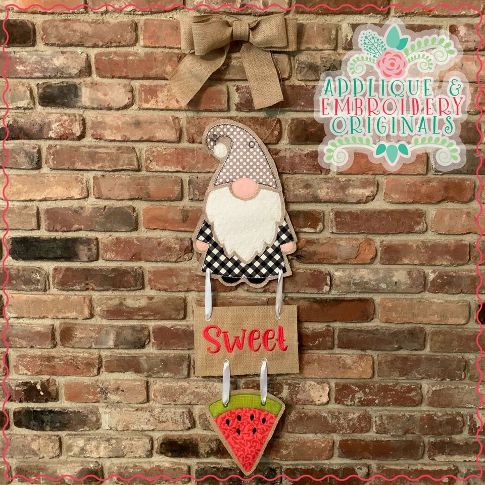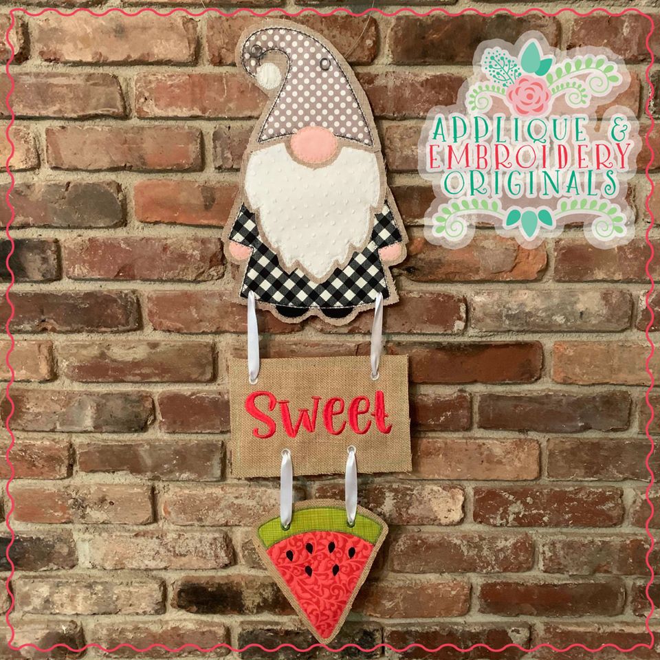 2697 Watermelon & Plaque Interchangeable for Gnome In-The-Hoop Design