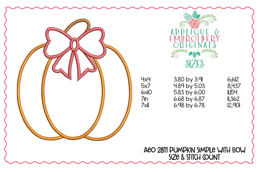 2811 Simple Pumpkin with Bow Applique Design