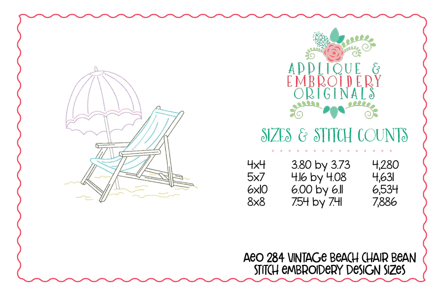284 Vintage Beach Chair Bean Stitch Embroidery Design
