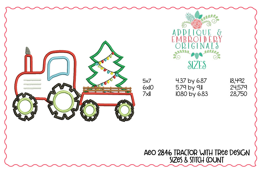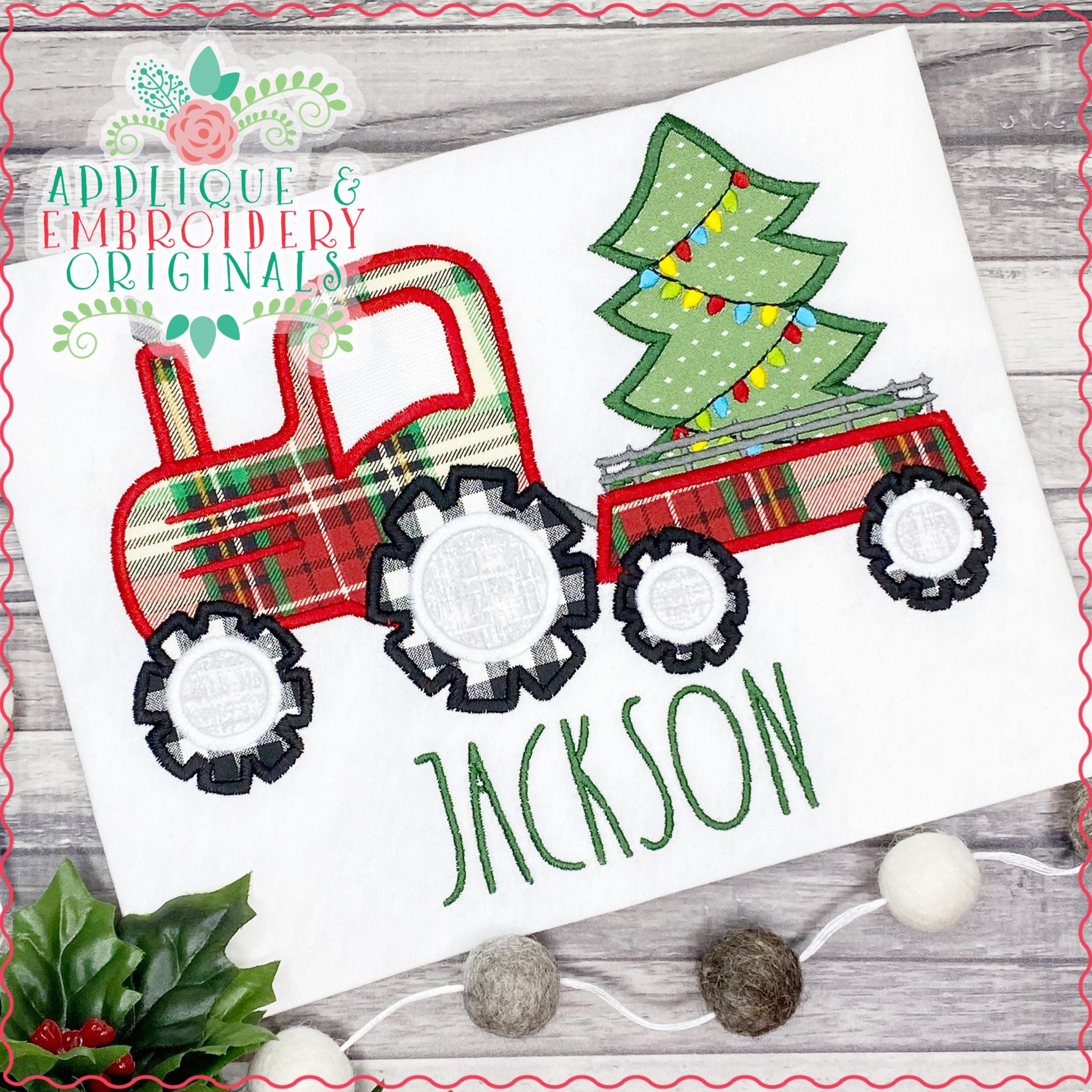 2846 Tractor with Christmas Tree Applique Design
