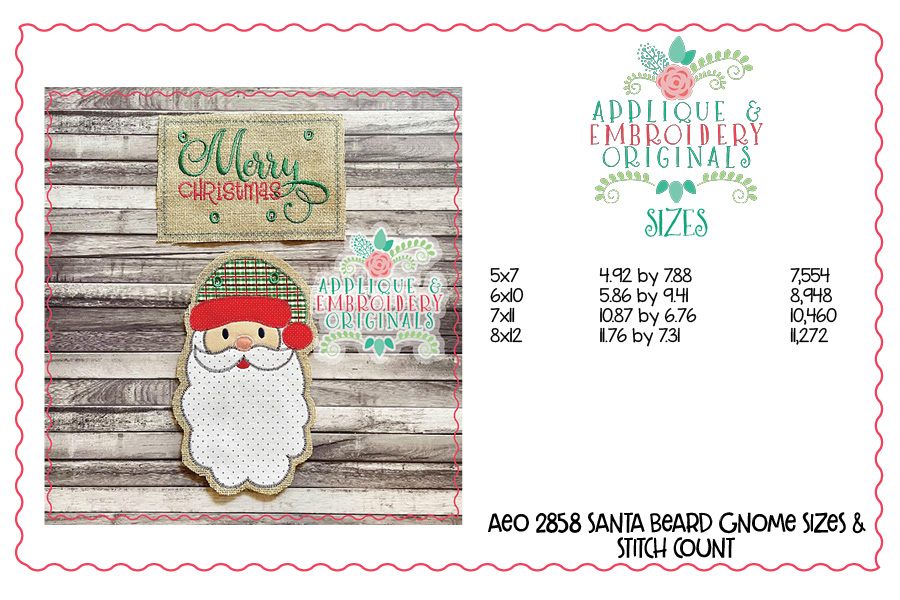 2858 Santa Beard Interchangeable for Gnome In-The-Hoop Design