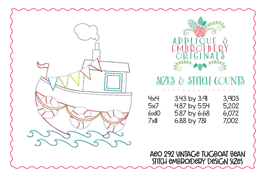 292 Vintage Tugboat Bean Stitch Embroidery Design