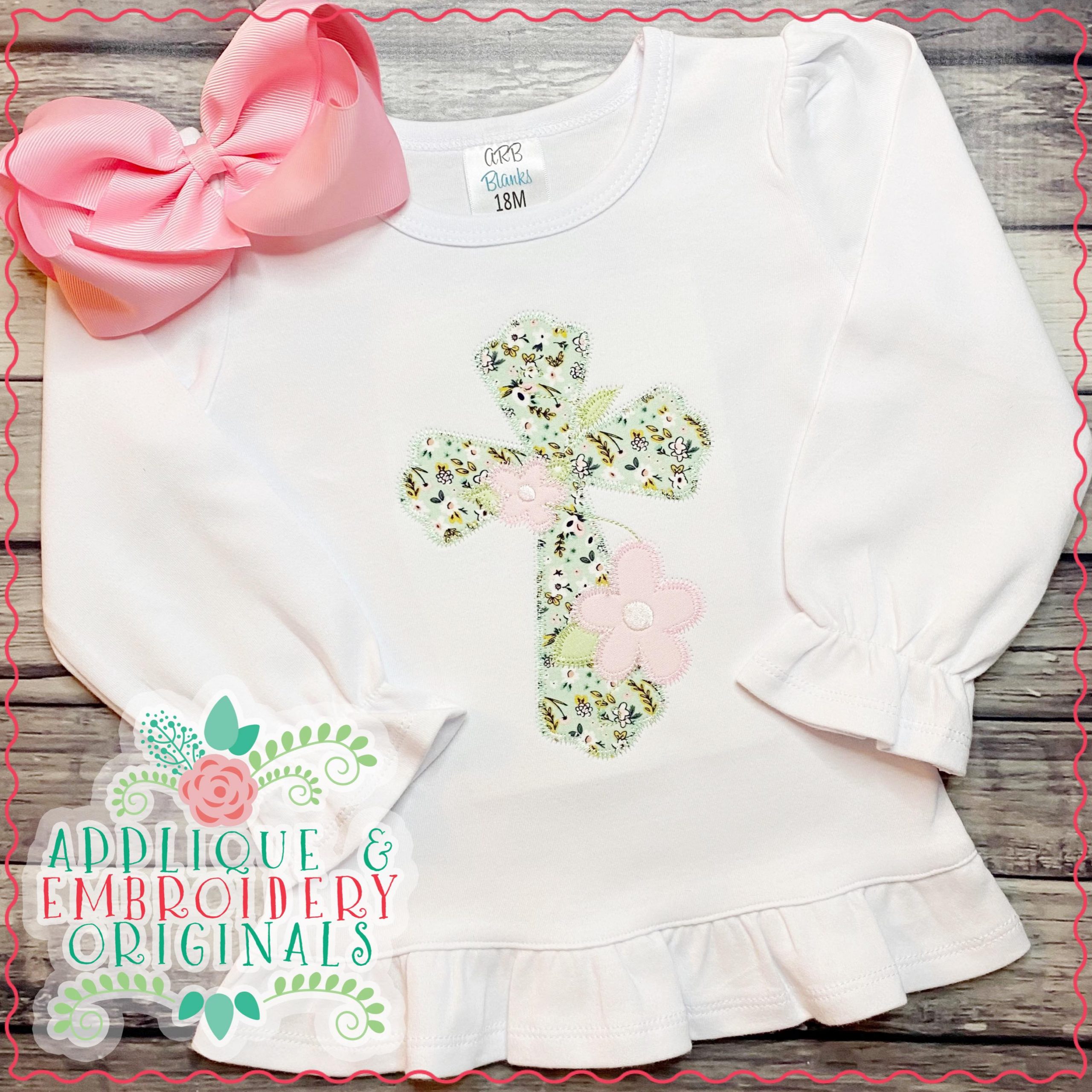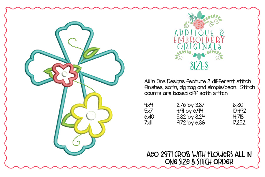 2971 Cross with Flowers All-In-One Applique Design