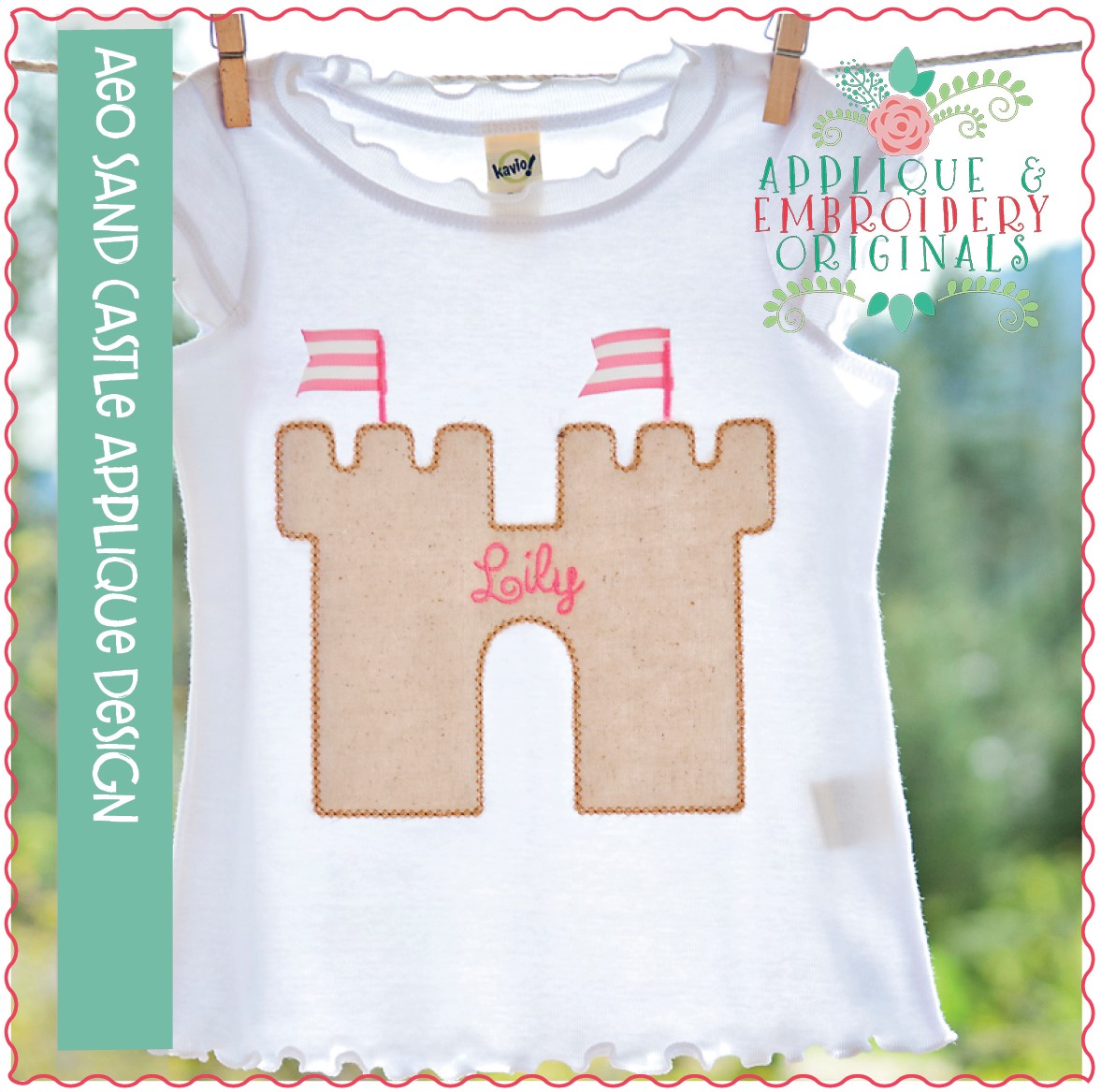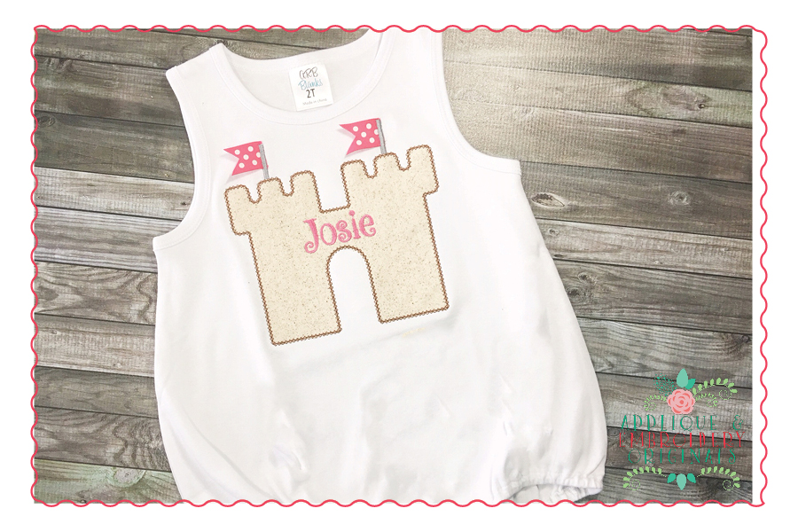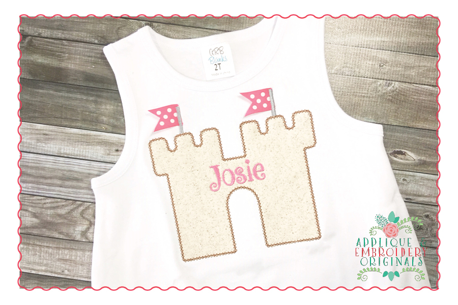 326 Vintage Sandcastle with Ribbon Flags Applique Design