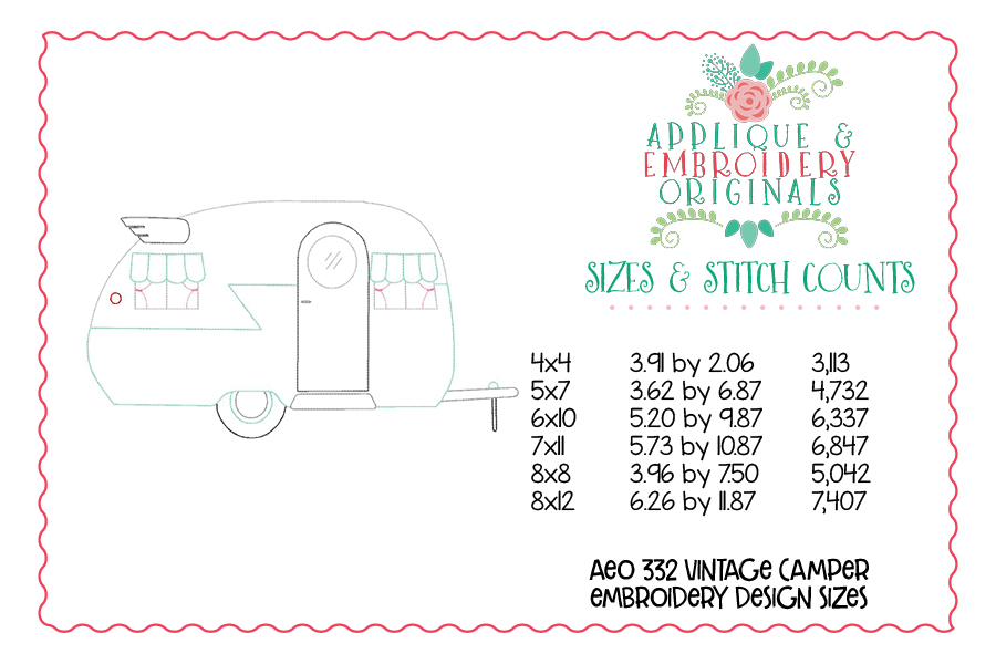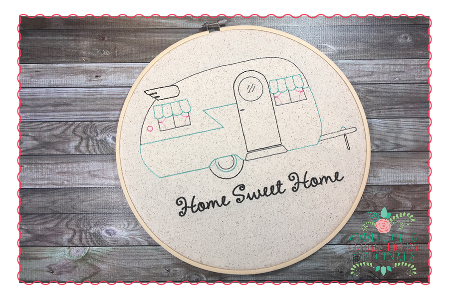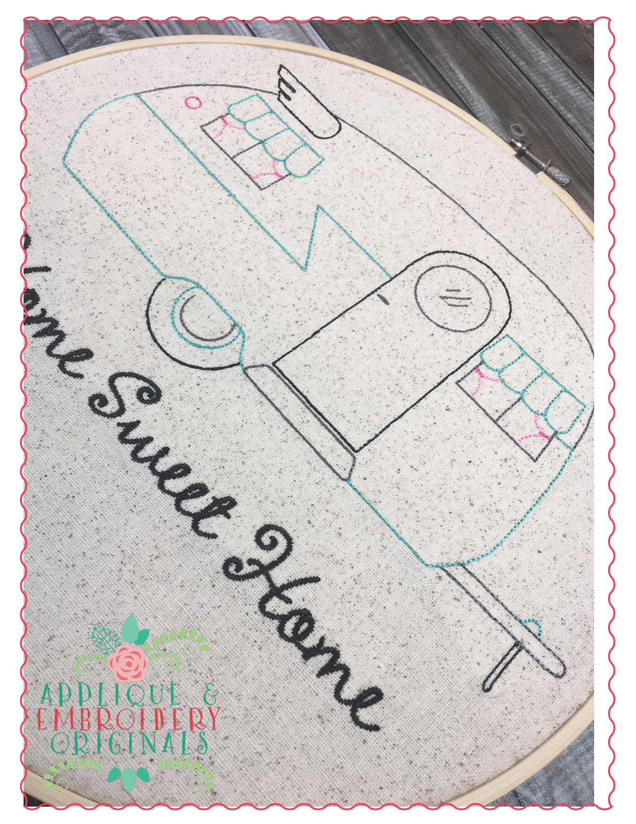 332 Vintage Camper Camping Bean Stitch Embroidery Design – Applique And Embroidery Originals
