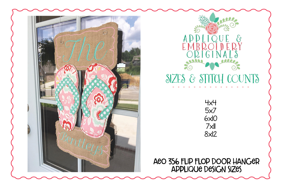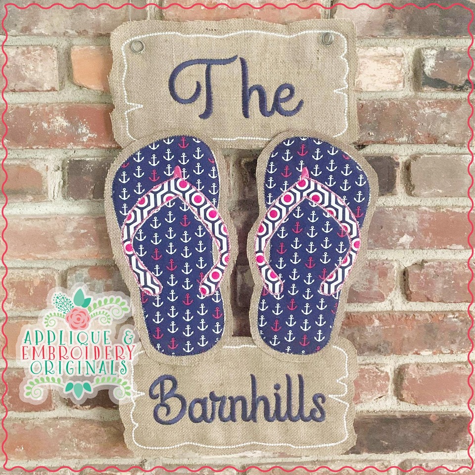 356 Flip Flops Beach Door Hanger In-The-Hoop Applique Design