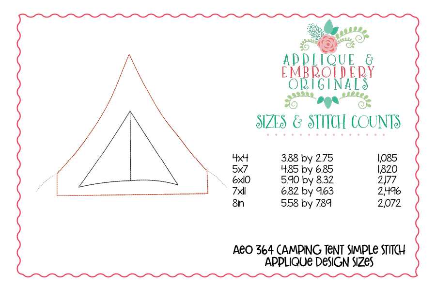 364 Camping Tent Simple Stitch Applique Design