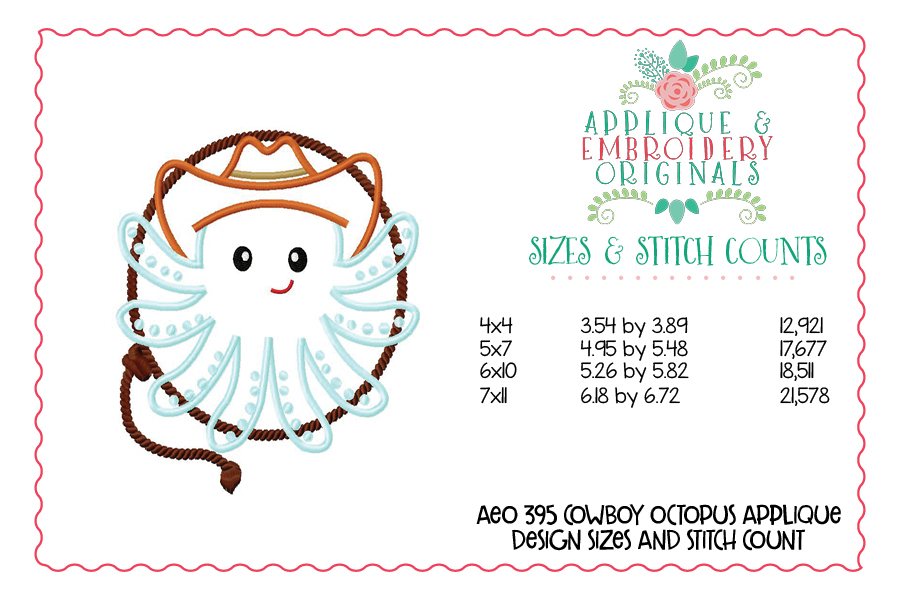 395 Cowboy Octopus Applique Design