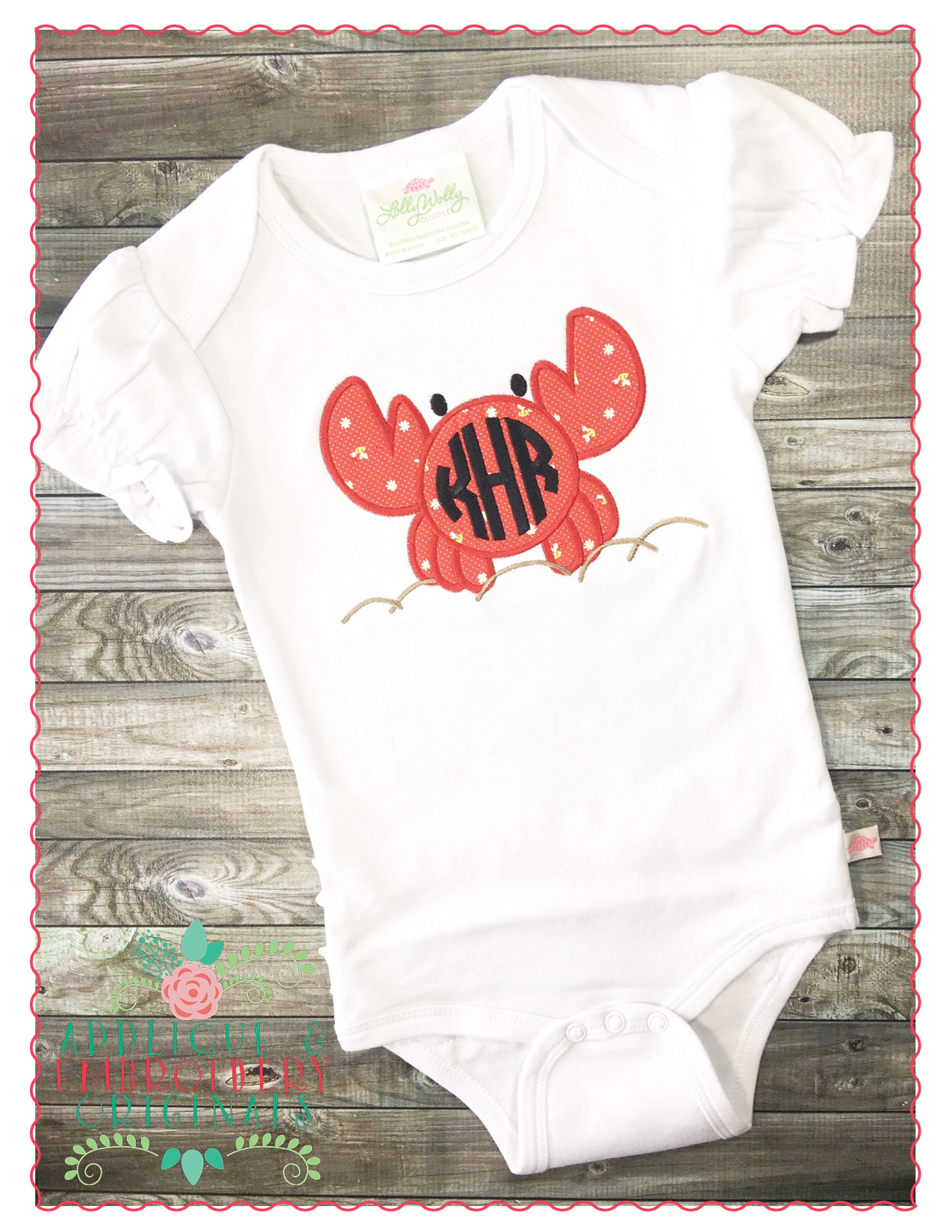 396 Crab Monogram Frame Applique Design
