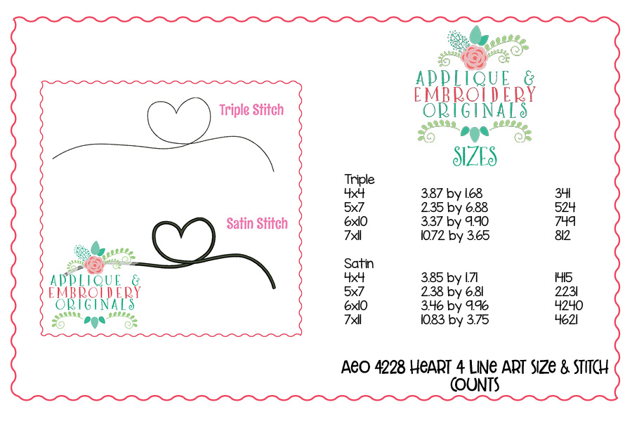 4228 Heart 4 Line Art Embroidery Design