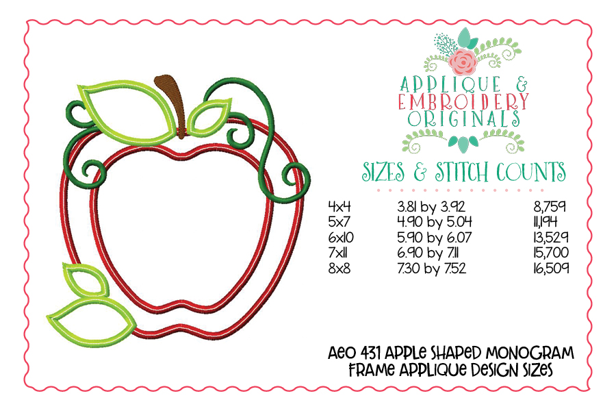 431 Apple Shaped Monogram Frame Applique Design